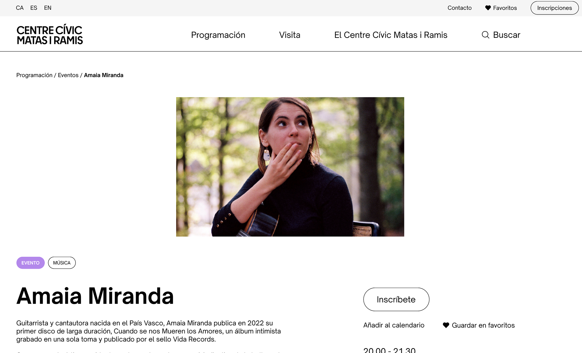 Website concept, user research, and redesign for the civic centre Matas i Ramis in Barcelona.