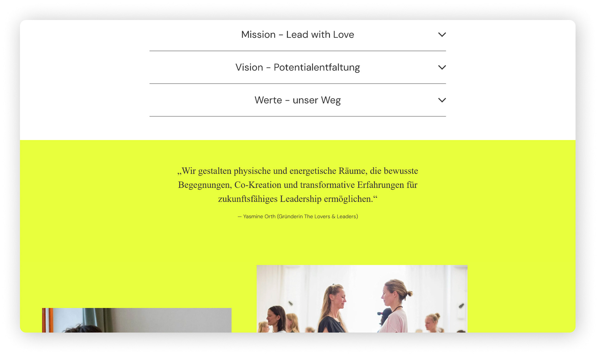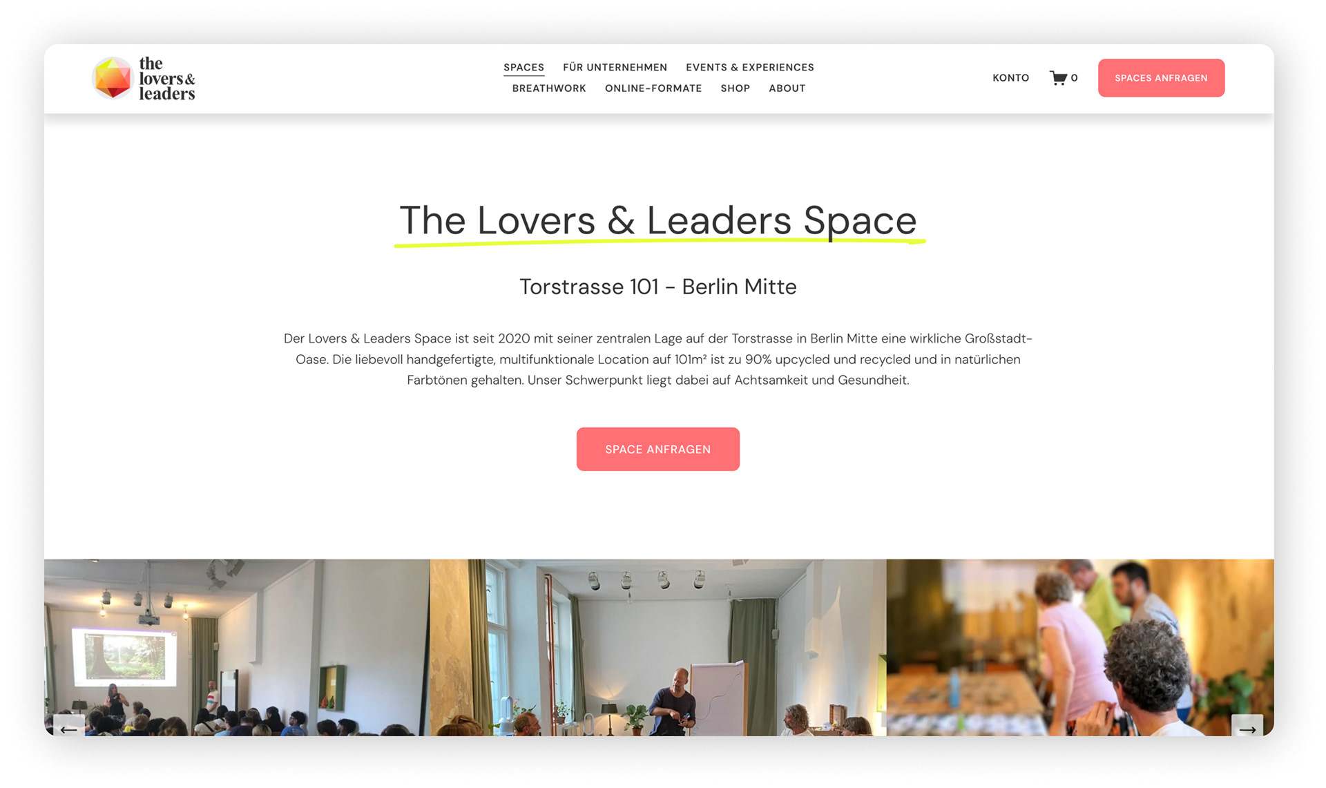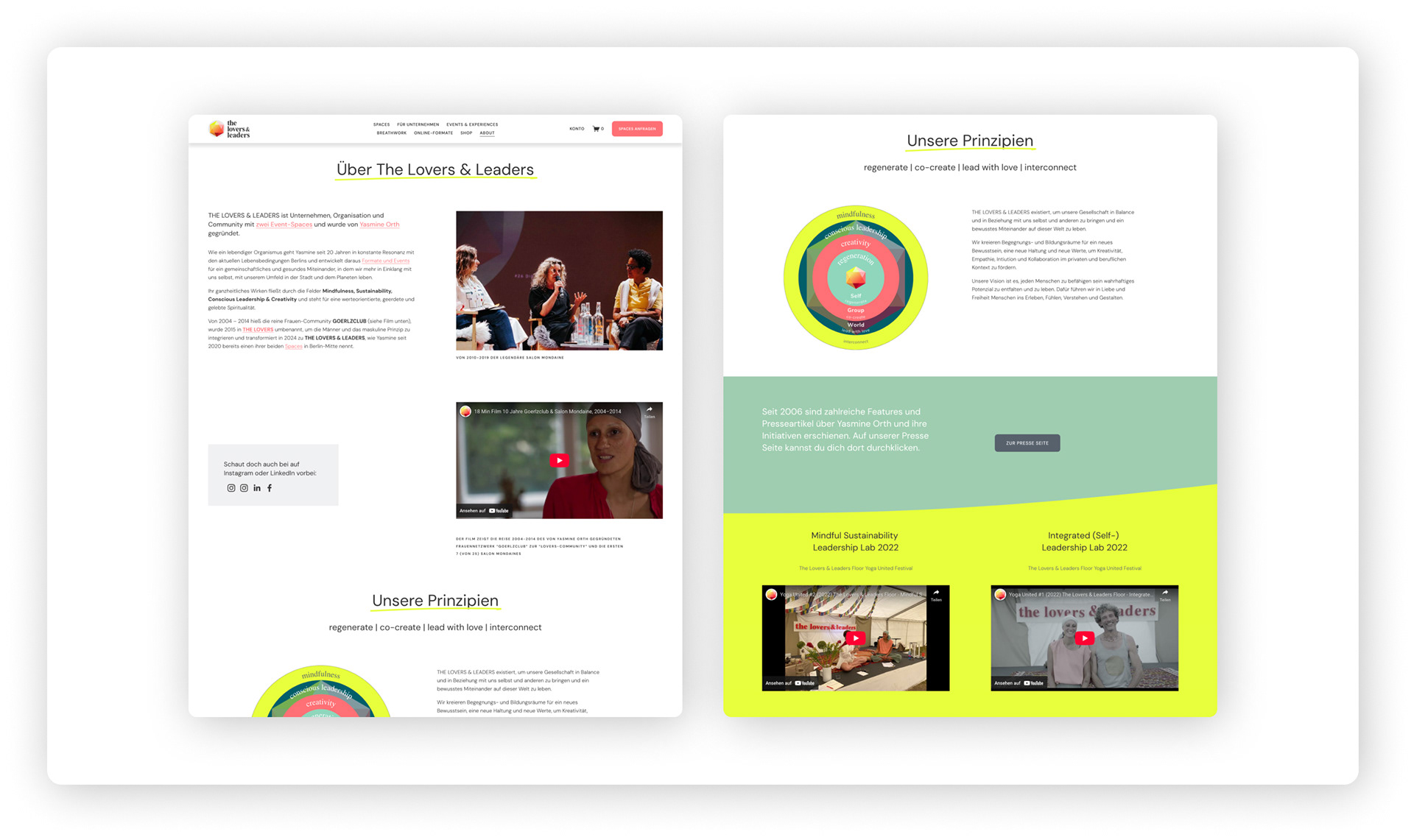 Squarespace website refresh, site structure, and UX improvements for The Lovers & Leaders, an organization for mindful leadership formats and space rental in Berlin.